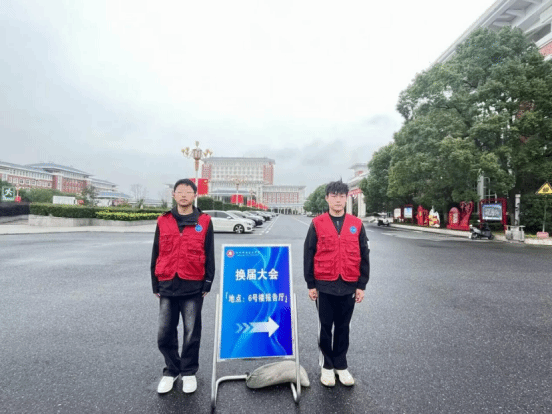 从校园入口到会场沿途,学生志愿者们身着红色志愿服,在多个路口的指示牌旁为参会人员提供引导服务。指示牌清晰标注“换届大会 地点:6号楼报告厅”,志愿者们以热情的态度、专业的服务,确保了参会人员高效、顺利地抵达会场。会场内,志愿者们还承担着资料发放、座位引导等工作,他们的身影成为大会一道亮丽的风景线,展现了我校学子的责任与担当。