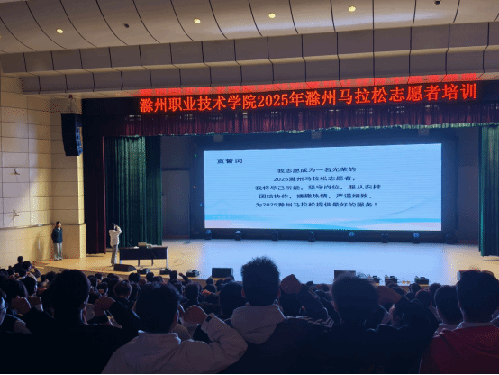 为提升志愿者专业服务水平,保障后续马拉松赛事顺利开展,11月10日,滁州职业技术学院在大礼堂举办马拉松志愿者专项培训活动,全体参训志愿者以饱满热情投入学习。