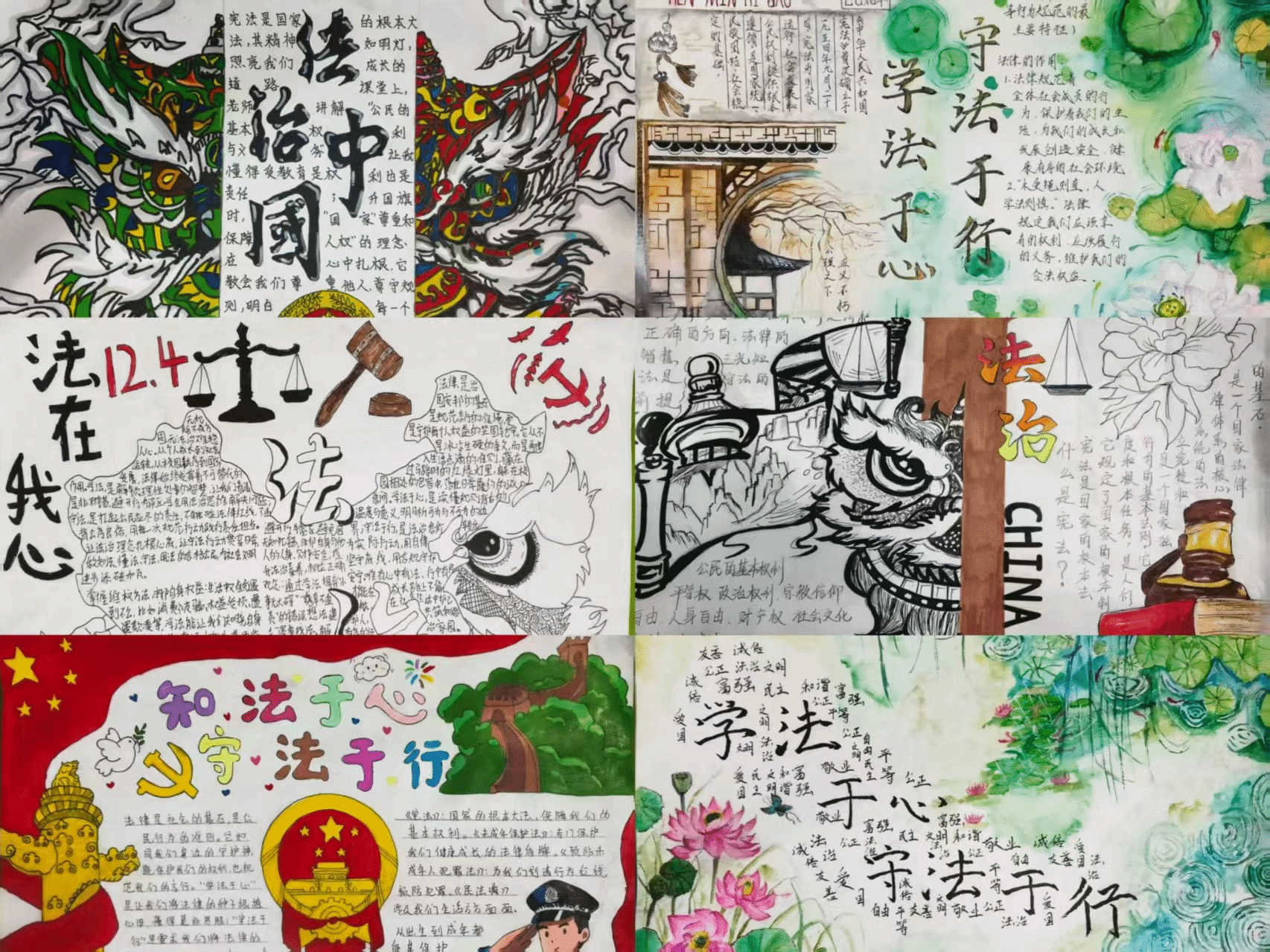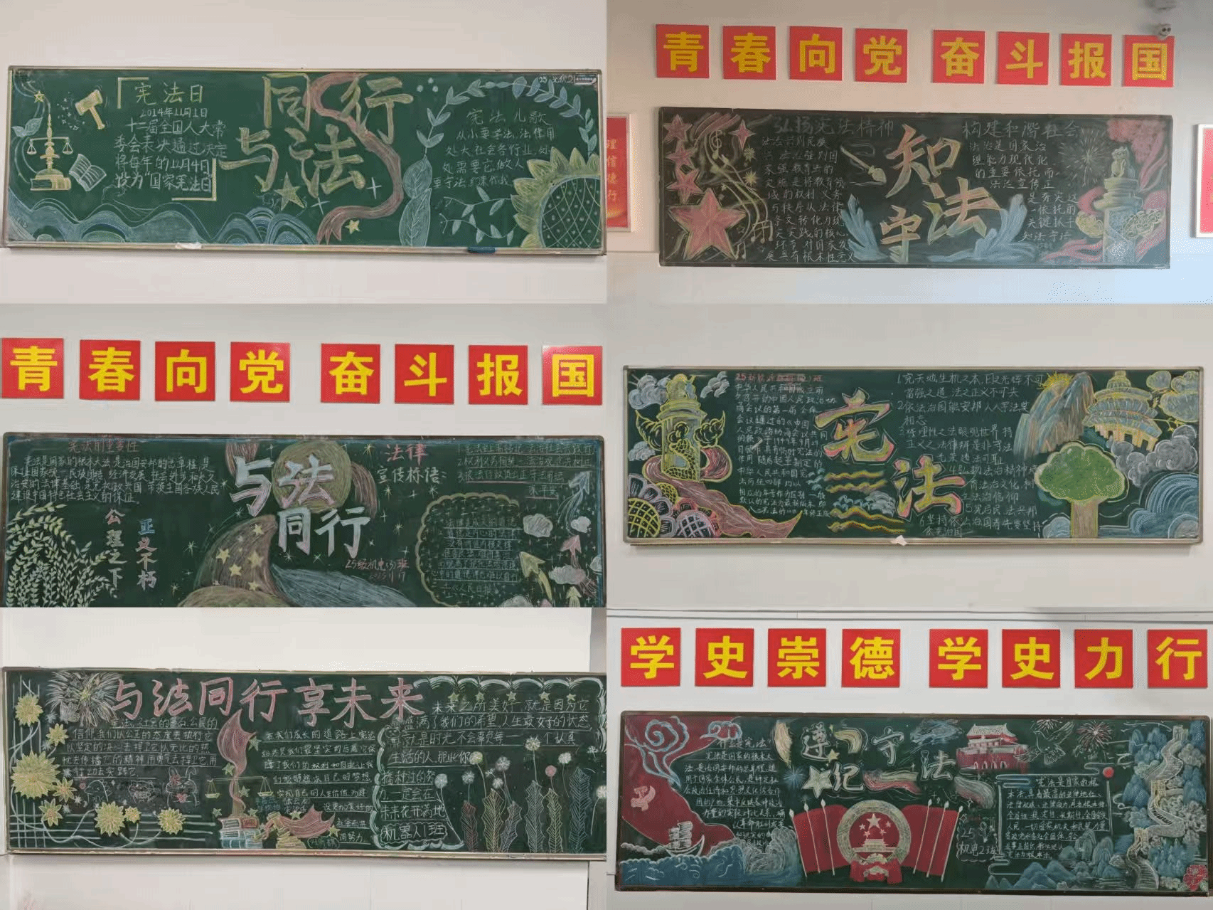 开展宪法黑板报活动和手抄报活动,各班级查阅资料、精心设计,每一件作品都独具匠心,不仅有宪法的基本知识介绍,还有生动有趣的案例分析和寓意深刻的漫画。宪法黑板报设计中有的班级以“与法同行”为主题,用图文并茂的形式展示了宪法在日常生活中的重要作用,为营造浓厚的法治校园氛围起到了积极的推动作用。