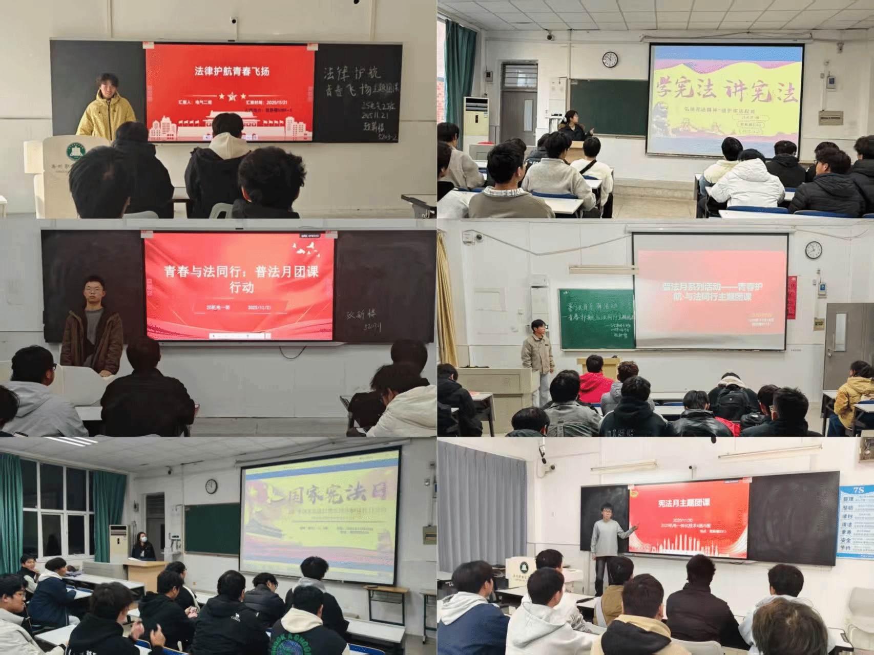 “宪法晨读”声入人心,12月4日学校组织开展“宪法晨读”活动。各院部、各班级在教室开展晨读,通过晨读活动,学生们重温了宪法精神内涵,增强了宪法意识,营造了尊崇宪法、学习宪法的浓厚氛围。主题演讲比赛显担当,学校举办“学宪法讲宪法”主题演讲比赛,选手们围绕“宪法与青春同行”“法治护航成长”等主题,阐述对宪法精神的深刻理解,分享身边的法治故事,我校选送作品获得2025年第十届全省学生“学宪法讲宪法”演讲比赛高校组优秀奖。