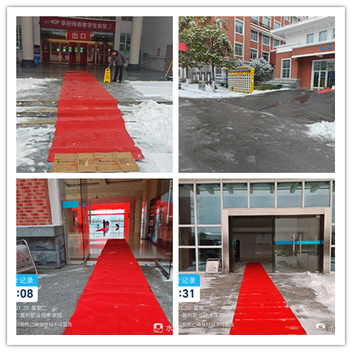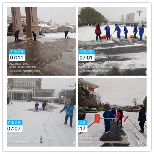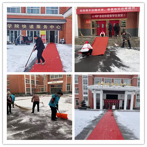 7:30前,后勤服务中心全体人员到校,所有人员按照既定的安排靠前指挥、以身作则,与一线人员并肩作战。众人齐心协力,于8:00前彻底清除各楼宇间主干道及重点区域冰雪,保障校园道路畅通,为师生日常工作学习保驾护航。