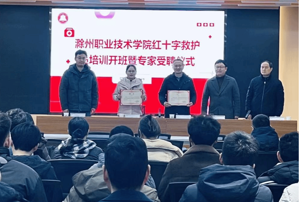 此次培训还特聘请了滁州城市职业学院护理学院李勋华和沐菊老师作为我校急救教育专家,并颁发了聘书。