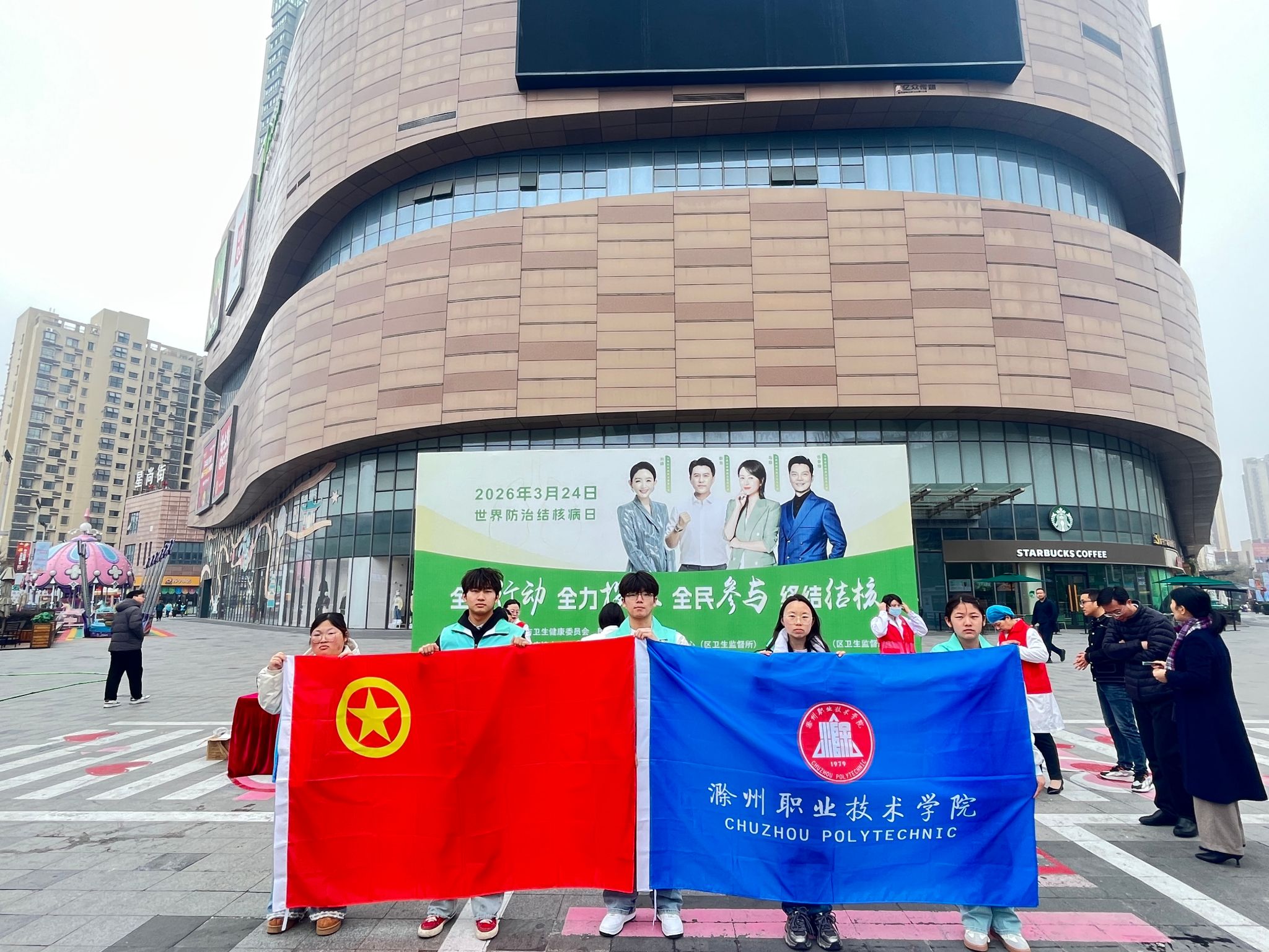 2026年3月24日是第31个“世界防治结核病日”,为切实提升师生结核病防治意识,筑牢校园公共卫生安全防线,滁州职业技术学院作为协办单位,携手滁州市卫生健康委员会等多家单位,于苏宁广场开展以“全面行动 全力投入 全民参与 终结结核”为主题的防治结核病日宣传活动。