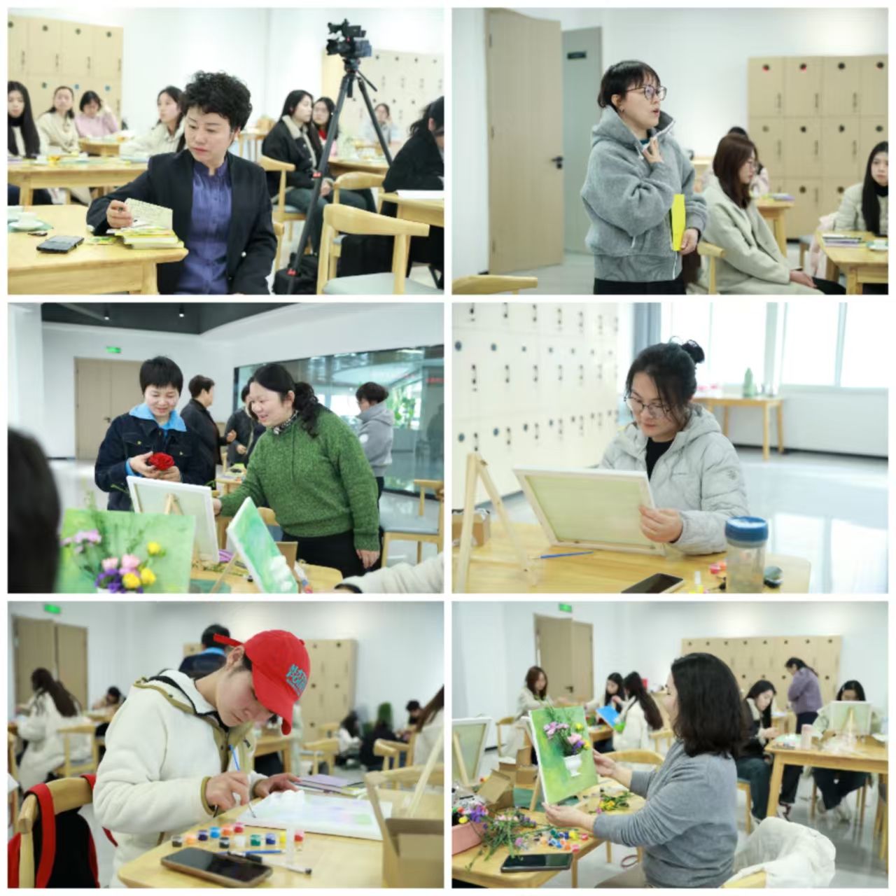 分享结束后,活动进入温馨治愈的立体油画插画手作环节。滁州市闲静草木间茶社的主理人李明玉女士和滁州市故里美学馆的主理人车萱橦女士现场指导,带领师生将阅读感悟融入美学创作,亲手装点属于自己的“精神花园”。每一枝花的选择、每一次色彩的搭配,都是师生对“自我选择”的践行,更是对伍尔夫精神的生动诠释——正如达洛维夫人所说,“我要自己去买花,我要亲手装点属于我的生活与空间”,让文字中的力量转化为看得见、摸得着的美好。