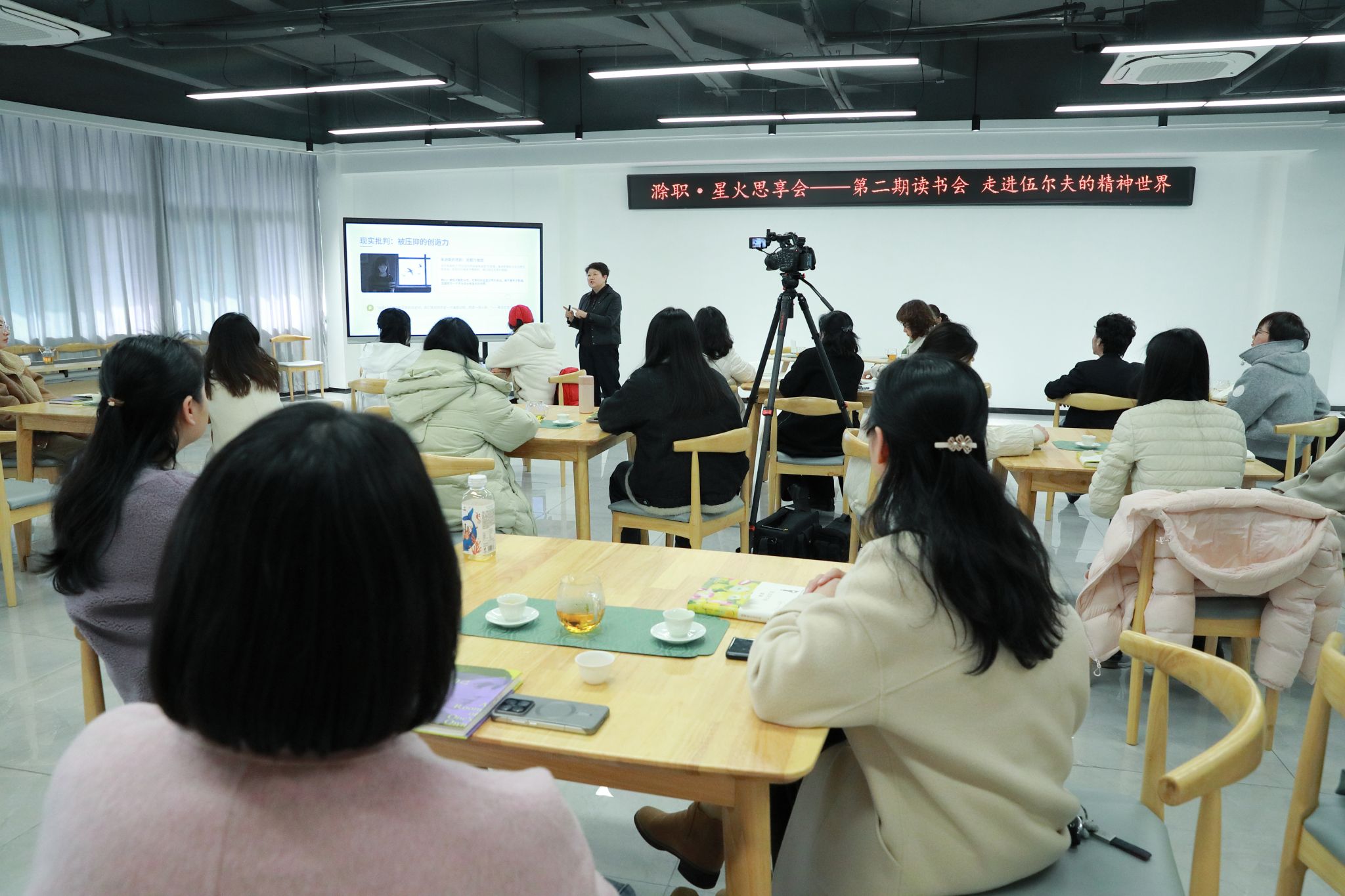 为丰富师生精神文化生活,引导广大女教职工、女大学生在经典阅读中汲取智慧、涵养独立人格,营造爱读书、读好书、善读书的校园文化氛围,3月25日下午,“滁职·星火思享会”第二期主题读书会在教工活动中心温情启幕。本次读书会的主题为走进弗吉尼亚·伍尔夫的精神世界。活动由校妇联、组织人事处、宣传统战部联合主办,各党总支、各学院推荐的女教职工、女大学生代表参会,多位校外嘉宾受邀莅临,共赴一场跨越时空的文学之约、心灵之遇。