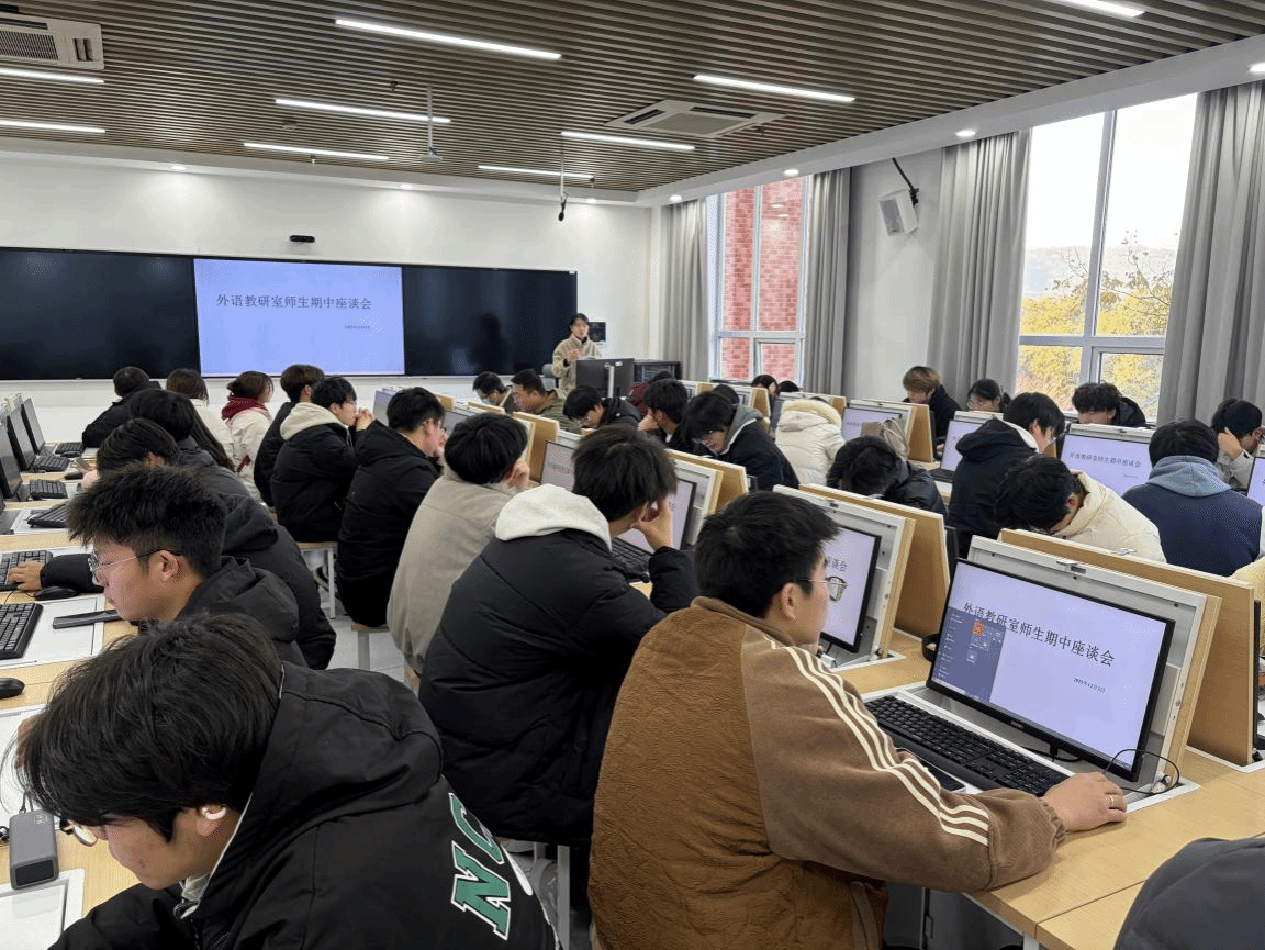 为持续提升我校公共英语、日语课程教学质量,把脉学生学习需求,提高学生学习积极性,12月3日下午,基础教学部外语教研室在综合楼201语音室召开本学期师生座谈会。外语教研室教师和全校各学院五十余名学生代表齐聚一堂,围绕本学期公共英语、日语课程内容、教学方法、课堂模式等话题进行了面对面交流。