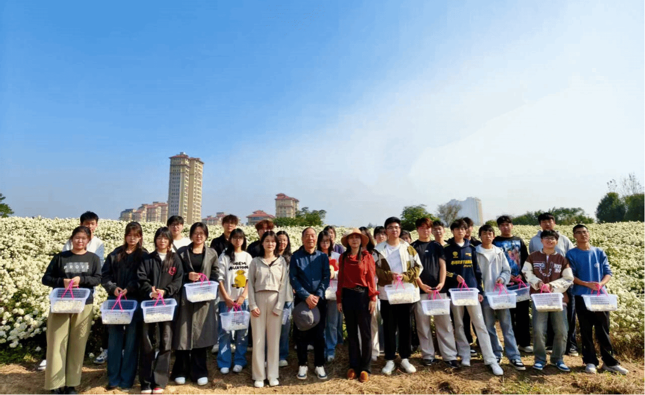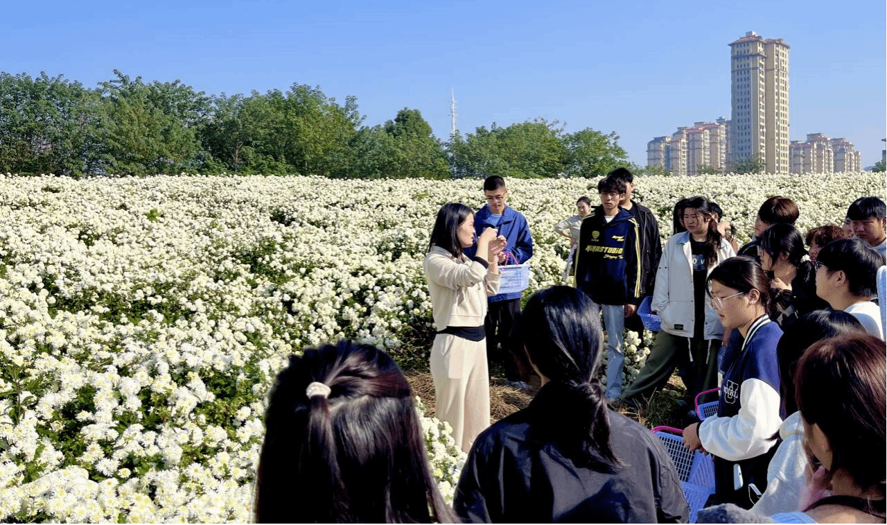 为深入贯彻落实新时代大学生劳动教育的要求,让学生在亲身实践中“受教育、长才干、作贡献”,11月17日,基础教学部劳动教育教研室组织学生走进我校与金玉滁菊公司共建的劳动教育实践基地,开展以“采摘滁菊”为主题的劳动实践课程。该基地旨在打造一个集“种植、养护、采摘、加工”于一体的全景式实践平台,本次采摘环节是继前期参与种植、养护管理后,在“全过程、沉浸式”劳动教育体系中的又一次深度实践。通过这种全链条的课程参与,学生们从课堂走向田野,在理论联系实际中,亲身感知国家级地理标志产品——滁菊的成长历程与制作工艺。