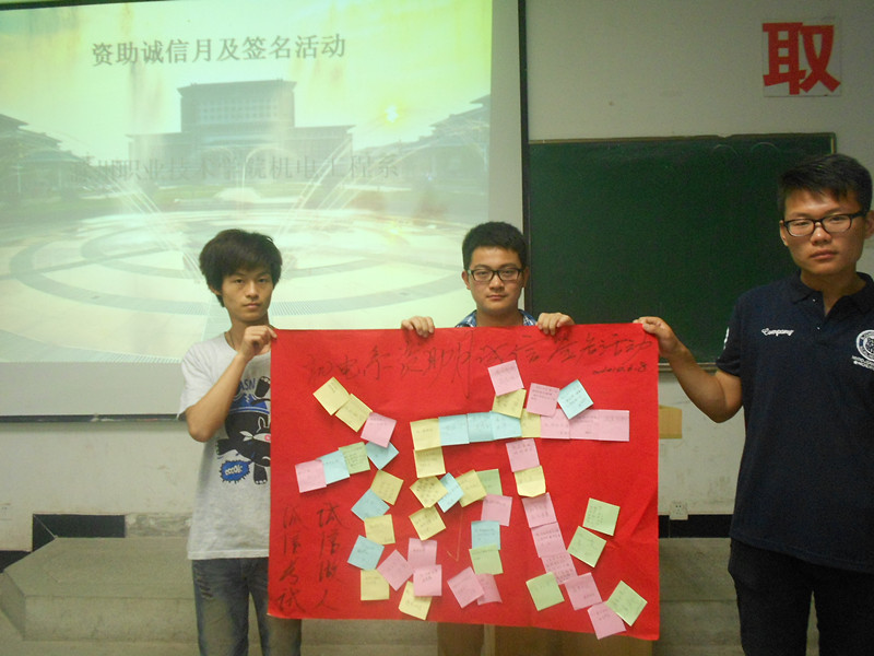 通过此次“诚信签名”的活动,让同学们知道了国家在补助方面的政策,以更好的激励同学们奋发图强。