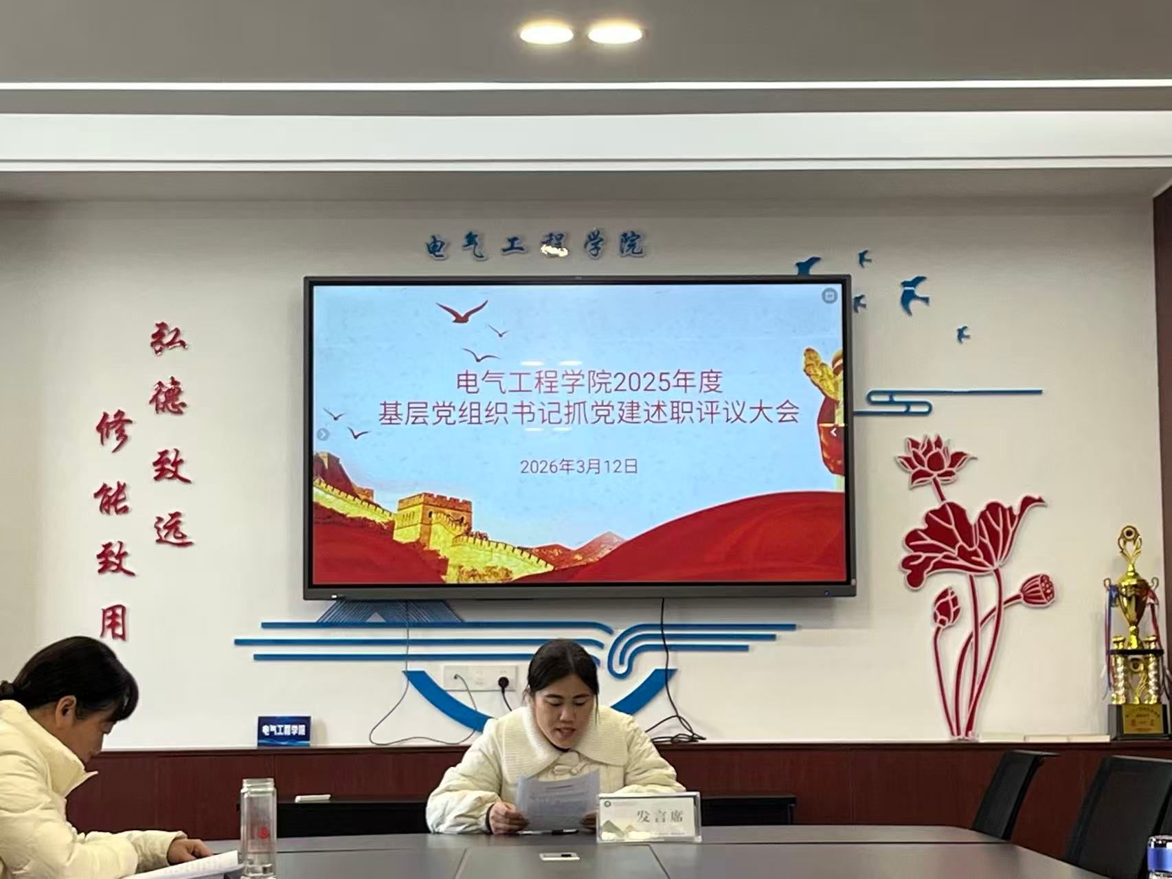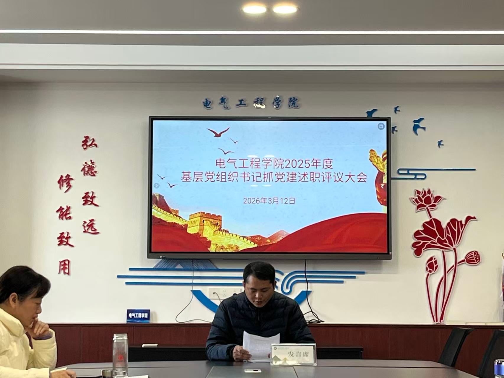 3月12日下午,电气工程学院党总支在5304会议室召开党总支扩大会议,进行2025年度党组织书记抓党建述职现场评议考核。党总支书记薛天飞主持会议。学院党总支委员、党政联席会议成员参加会议。