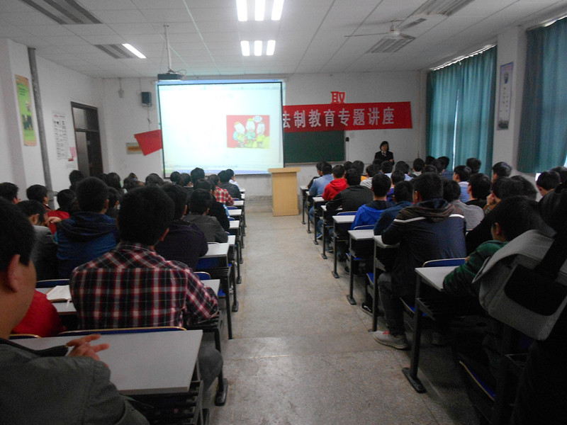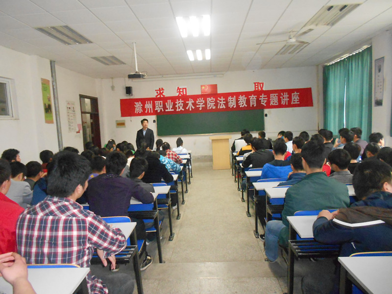 为创建安全文明的校园环境,推进大学生学法用法工作的深入开展。2014年4月23日星期三下午,滁州市琅琊公安分局派出所民警和学院保卫处王煜康老师在5103教室为机电系学生上了一节精彩生动的法制安全教育课。