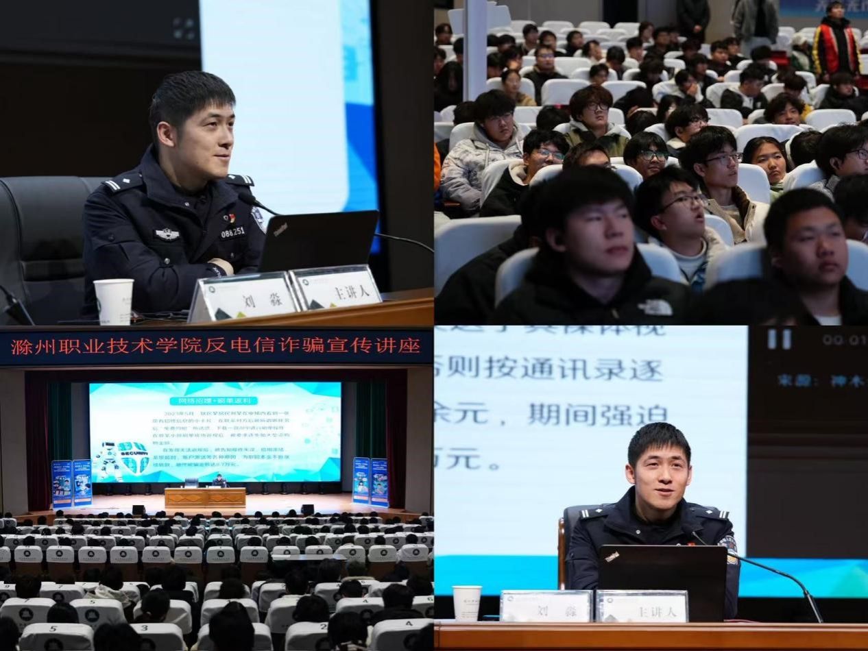 为进一步增强电气工程学院在校学生的反诈防诈意识,提升学生自我保护能力,12月10日晚19点,电气工程学院组织2025级新生在六号楼报告厅参加反电信诈骗宣传讲座,本次讲座由保卫处与滁州市南谯区龙蟠派出所联合举办。