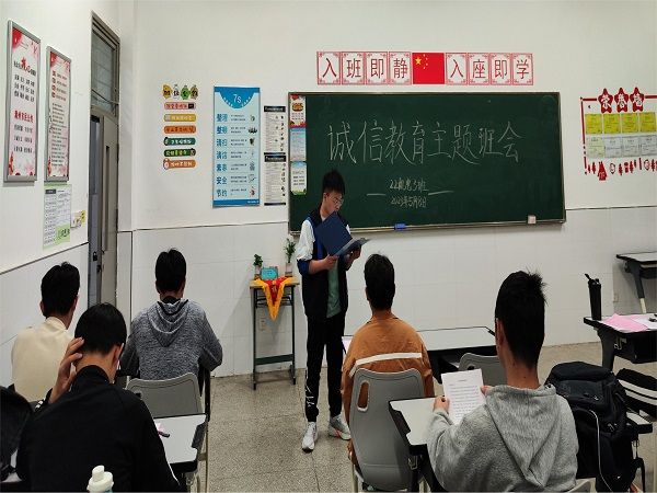 诚信,是人类文明的阶梯;诚信,是人生的命脉,是一切价值的根基;诚信就像人生航船的楫桨,控制着人生的方向。为大力弘扬诚信文化,提高大学生诚信品质,22机电3班于2023年5月8日晚在5203-2教室开展以“诚以为本,信以立身,做文明学生”为主题的班会活动。22机电3班全体同学参加此次班会。
