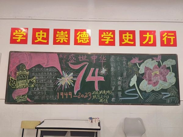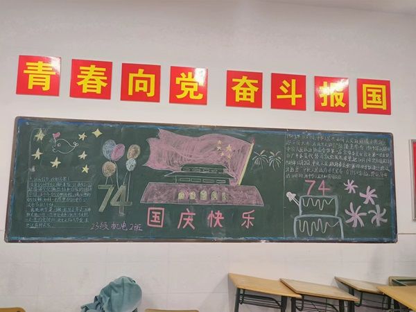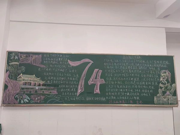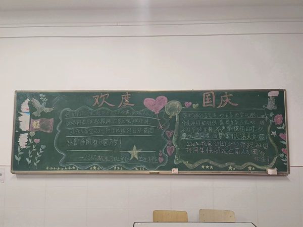 为庆祝新中国成立74周年,唱响新时代主旋律,弘扬中华优秀传统文化,增强民族凝聚力,渲染节日气氛、厚植家国情怀,丰富学生的校园文化生活,近日,我院23级各班级学生在团总支宣传部的引领下开展了“迎国庆,颂祖国”为主题的黑板报活动。
