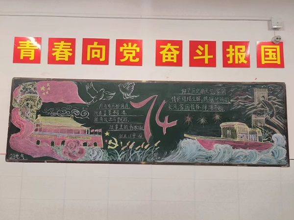 在院团总支和各班班委的带领下,同学们积极行动,精选素材,精心设计版面,用粉笔书写、以图画传情,向祖国母亲献礼。同学们以一块黑板为框架,以粉笔、颜料为工具,谱写爱国情怀,细致笔触,勾勒出一幅幅美丽画卷。让一个个黑板演绎出跳动的气息,以丰富多彩且充满青春活力的画面呈现在我们的眼前。同时在这充满意义的节日里,我们更要坚持中国特色社会主义道路,为实现中华民族伟大复兴的道路而铺砖添瓦,贡献出自己力所能及的力量。此次活动,让我们共庆祖国华诞,共享祖国荣光,黑板上的字画同时彰显了我们现如今拥有的强大的自信力,深深的为祖国而感到无比骄傲和自豪。