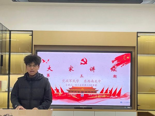 为引导我院青年学生体悟党的初心使命,坚守信仰,传承精神,让青年学子了解中国共产党在百年奋斗中为什么能成功。11月22日下午,由我院团总支组织牵头,开展【团青学堂】第三期活动,本期大家讲坛由23工业机器人2班李豪主讲。