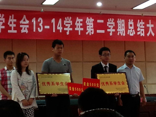 经贸系学生会过去一学期的工作受到了院团委的充分肯定,在考核评比中取得第一名的好成绩,受到院团委的表彰,获得“优秀系学生会”的荣誉称号。