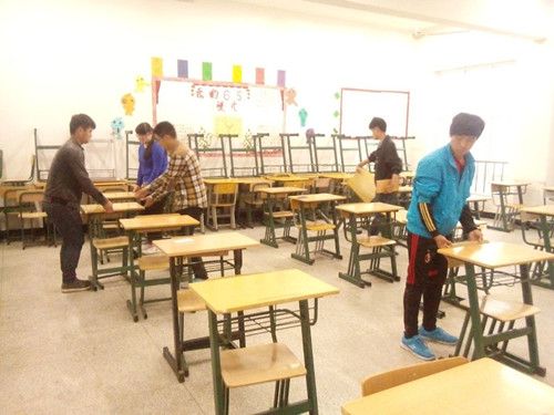 为了推进群众路线教育实践活动,加强“四库”建设,解决实际问题,经济贸易系党总支经过调研发现,一段时间以来,系教学楼教室课桌椅存在较为严重的混乱、缺损和缺失现象,对正常的教学秩序造成一定的影响。系党总支、团总支为了服务教学中心工作,维持正常教学秩序,对这一状况进行了分析和部署,并于4月25日组织团学干积极行动,进行了整改。