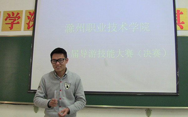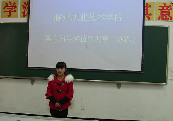 经过一个多小时的角逐,最终确定一等奖2名,二等奖3名,三等奖4名,其中,2013级旅游管理班学生储艳婷和2012级旅游管理班学生陈国双以富有个人特色的导游词、自然流畅的讲解、娴熟流利的应答表现齐摘桂冠,荣获一等奖。