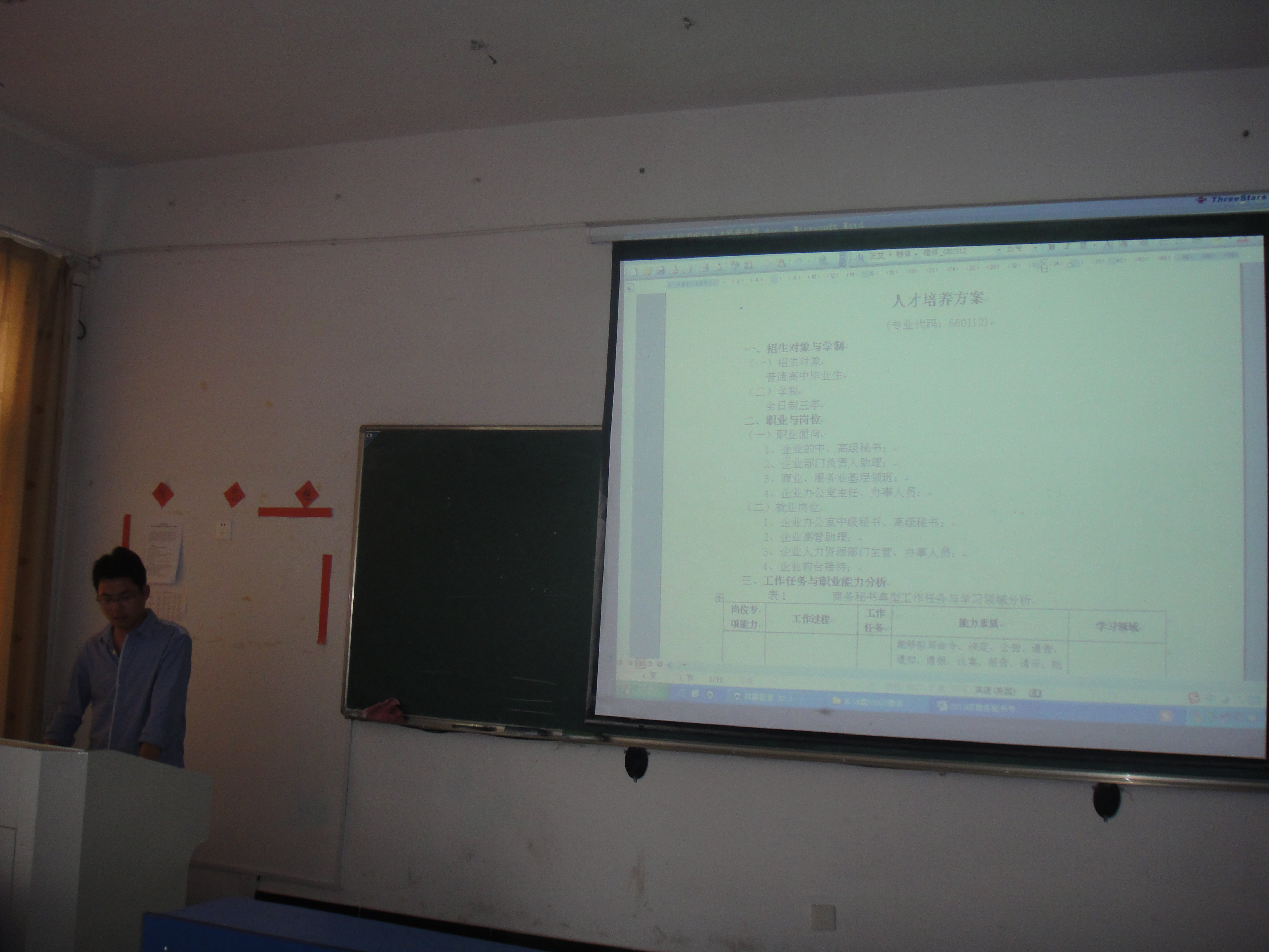 会上,文秘教研室潘申石主任结合新时期文秘专业的发展趋势,分别从专业课课程兼并与改革、课时的调整、实训课的安排等多个方面详细阐述了文秘专业2013级人才培养方案的内容。文秘教研室其他几位老师也各自从教学实践出发,对培养方案的修改提出了宝贵的意见。经贸系教学工作领导小组成员结合自身专业建设经验,对文秘专业的人才培养方案进行了讨论并提出了修订意见。