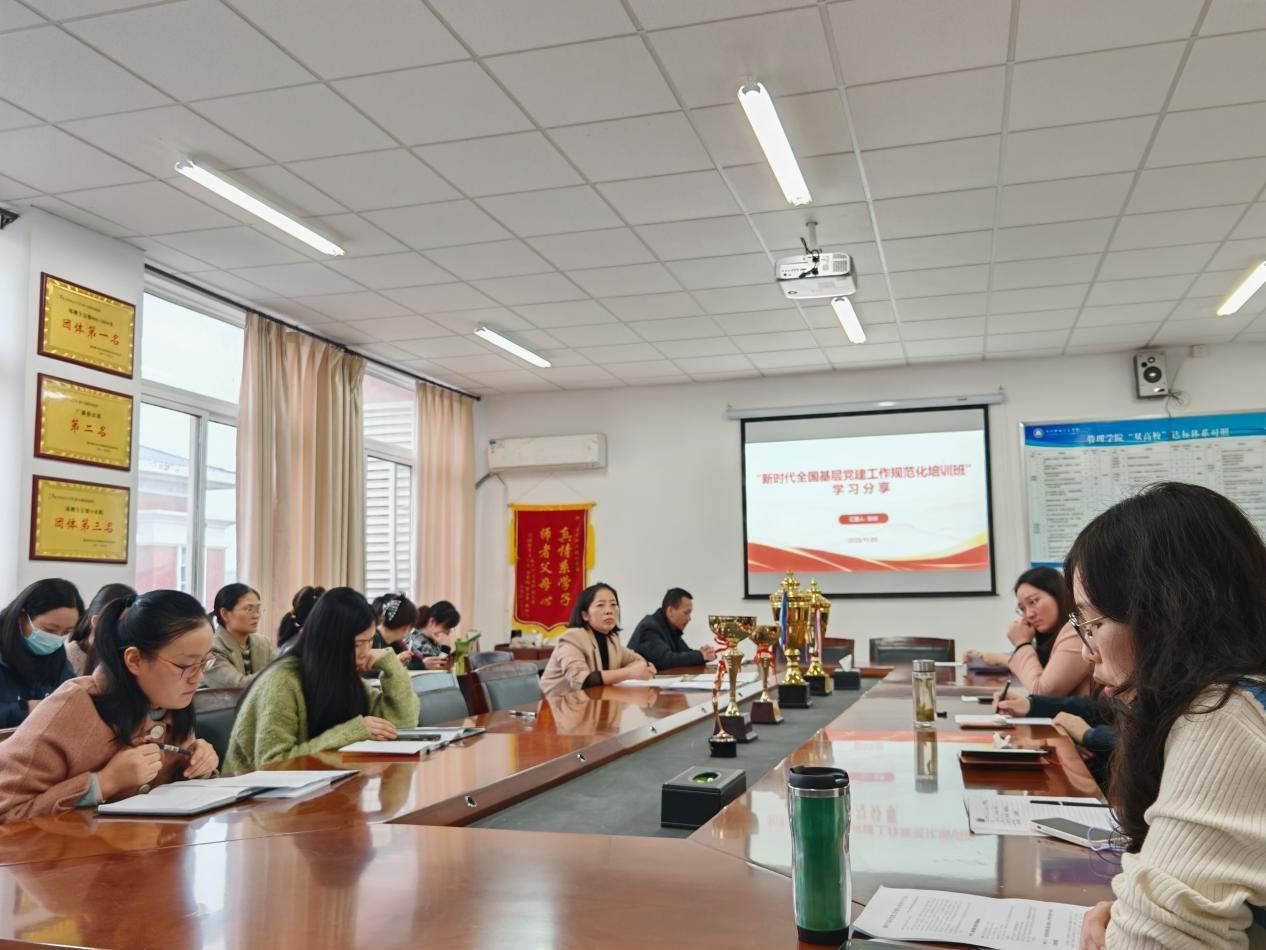 会上,何文婧带领全体党员认真学习了党的二十届四中全会精神,从全会召开的重要意义、核心要义等方面并结合学校发展实际进行了解读。她强调要深刻领会、准确把握党的二十届四中全会作出的一系列重大部署,要把学习好贯彻好党的二十届四中全会精神作为当前和今后一个时期的重大政治任务。随后,全体党员共同学习了《关于严格落实“第一议题”制度的工作提示》、《关于印发<滁州职业技术学院院(部)党组织会议议事规则>和<滁州职业技术学院院(部)党政联席会议议事规则>的通知》、《关于印发<滁州职业技术学院校企党组织联建共建实施方案>的通知》。学习环节结束后,近期外出党务培训的三名党员同志杨春艳、吴珍珍、张娴分别向全体党员汇报分享了相关培训的经验。