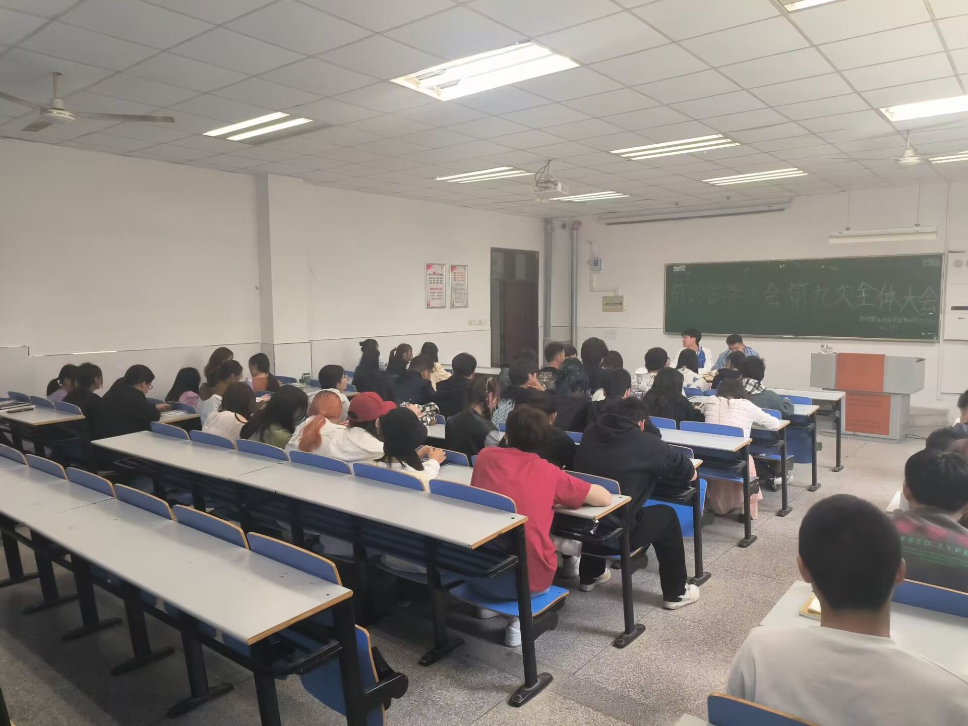 2023年4月17日11点半,管理学院学生会在致真楼1101教室召开管理学院学生会第四届第九次全体大会。