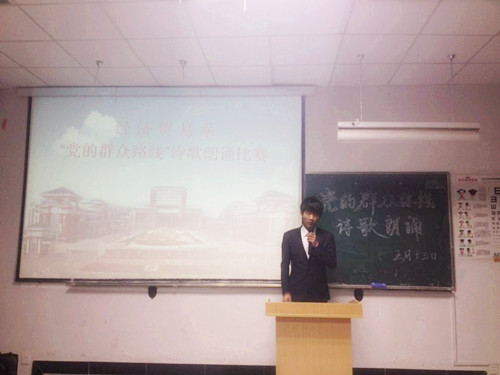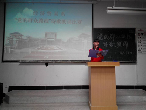 2014年5月13日,经济贸易系团总支、学生会在1101教室举行的“党的群众路线教育实践活动”诗歌朗诵比赛决赛圆满结束。