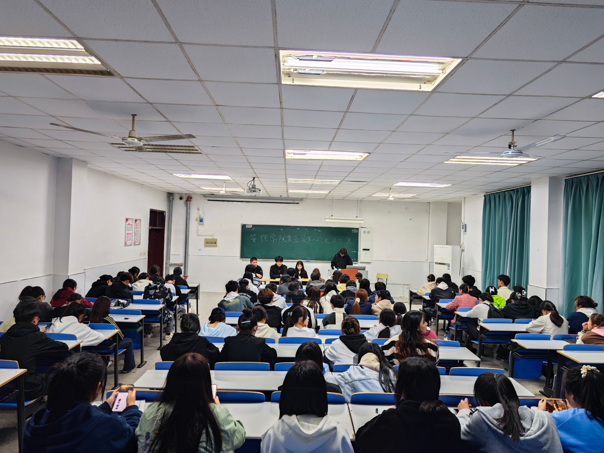 2023年11月7日晚上6时,管理学院学生会第五届第一次全体大会在致真楼1101教室召开。会议旨在向新一届学生会干事介绍新学期的工作安排计划以及组织结构,确保所有成员都对学生会的运作有一个清晰的了解。