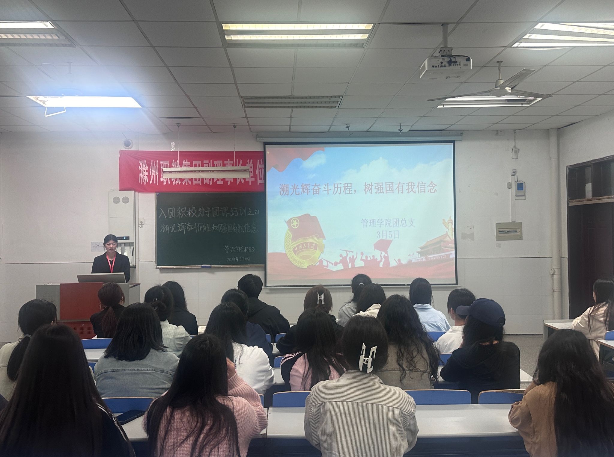凝聚青年力量,绽放最美芳华。2024年3月5日中午12点,管理学院团总支在致真楼1102教室举行了入团积极分子团课培训之“溯光辉奋斗历程,树强国有我信念”主题团课活动。本次活动由团总支赵怡宁主持,管理学院23级入团积极分子参加。
