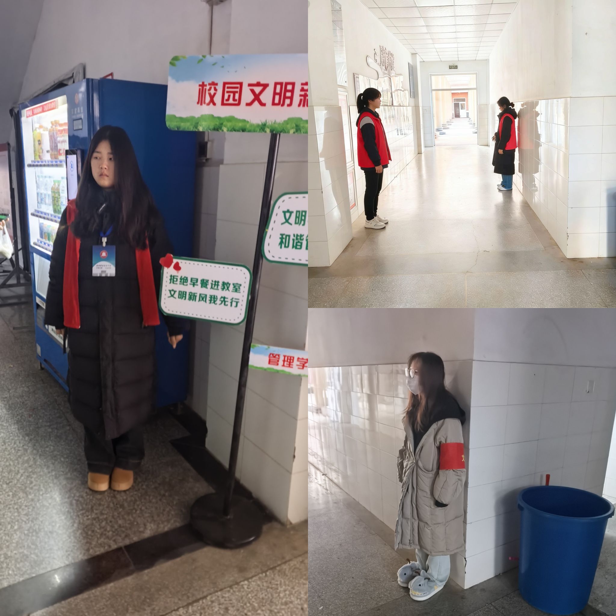 学生会各部门学子分批次值守教学楼入口、楼梯口等关键点位,将文明督导关口前移。值守期间,同学们重点聚焦早餐带入教学楼、教学楼内吸烟两类突出问题,遇到携带早餐的同学,便主动上前提醒教学区禁止饮食的规定;发现有吸烟苗头的同学,则及时进行劝阻并宣讲校园禁烟要求。让大家在温和的沟通中认识到不文明行为的不妥之处,自觉遵守校园文明规范。
