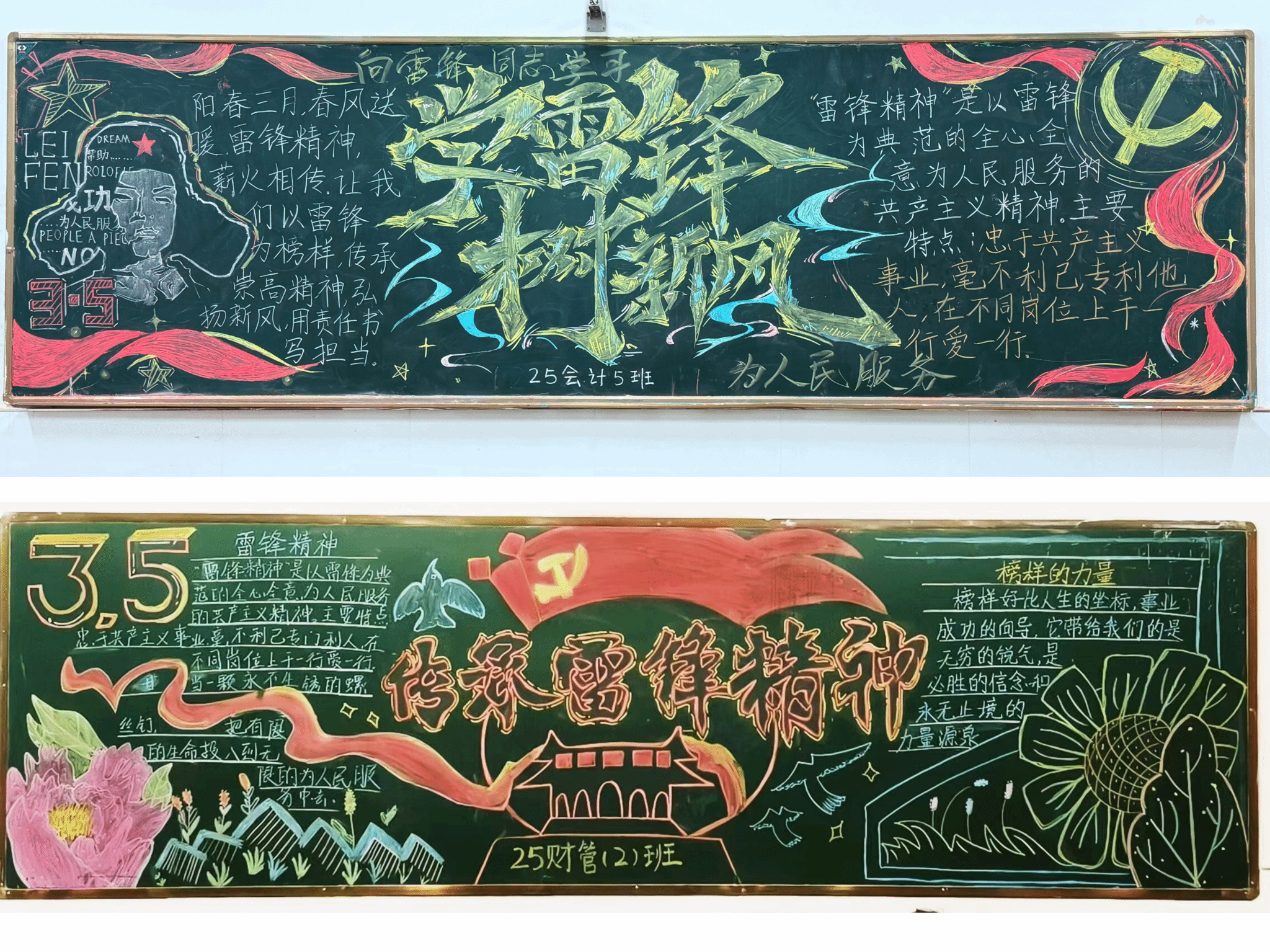 为弘扬雷锋精神,培育青年学子责任担当与奉献意识,管理学院团总支于2026年3月7日至13日,在2025级晚自习教室开展“弘扬雷锋精神,争做时代新人”主题黑板报比赛。活动面向25级全体学生,各班级积极响应、踊跃参与。