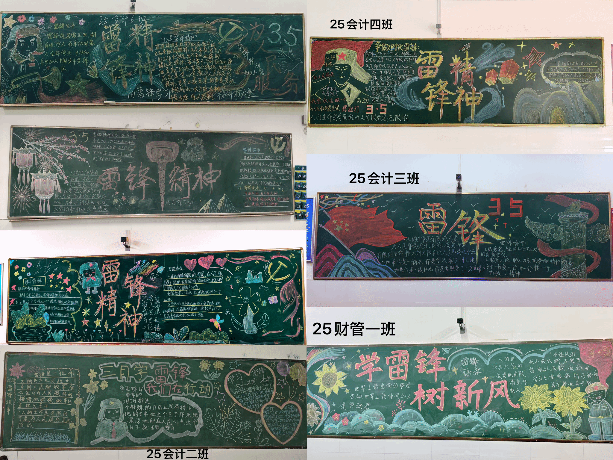 比赛中,同学们利用课余时间收集雷锋故事与志愿服务素材,分工协作、精心设计,将雷锋事迹、青春奉献等主题融入板报创作,用粉笔勾勒出温暖生动的画面。作品既展现了扎实的创作功底,也传递了积极向上的价值导向,彰显了青年学子对雷锋精神的深刻理解。经评比,25级会计5班,25级财管2班获得一等奖;25级工企2班,25级会计7班,25级工企1班,25级旅管3、4班,25级旅管1、2班获得二等奖;25级会计2班,25级会计3班,25级财管1班,25级会计1班,25级财管3班,25级会计6班,25级会计4班获得三等奖。