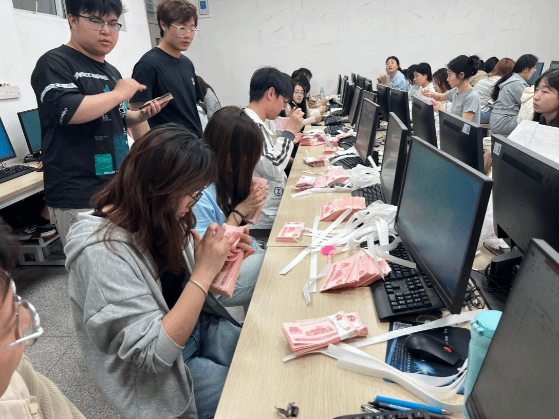 比赛现场气氛热烈,选手们全神贯注,在手工点钞和字符录入两个项目中展开激烈角逐。手工点钞项目中,选手们指尖翻飞,一捻、一弹、一记数,动作娴熟流畅,将日常训练的扎实功底展现得淋漓尽致;字符录入环节,键盘敲击声此起彼伏,选手们凭借快速的反应和精准的操作,在规定时间内高效完成任务,充分体现了扎实的专业素养和良好的心理素质。