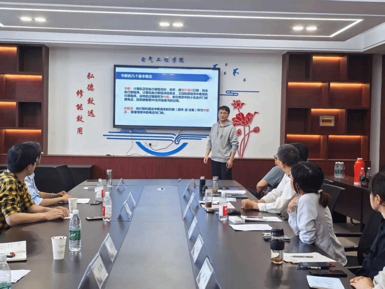 在交流研讨环节,双方教师积极分享教学经验。安徽科技学院的国海教授与樊晓宇教授系统介绍了他们在《单片机原理与应用》课程理论教学体系构建方面的成果,重点展示了如何运用模块化教学方法,将复杂的单片机架构拆解为易懂的知识单元,并结合 Proteus 仿真软件、虚拟实验室平台,实现理论与实践的同步教学,有效提升学生对抽象原理的理解。此外,他们还分享了课程考核评价体系的创新举措,通过设置小组项目、答辩展示等环节,全面考察学生知识应用与团队协作能力。滁州职业技术学院的教师则聚焦实践教学,介绍了该校以企业真实项目为导向,设计的单片机应用综合性实训项目,涵盖智能控制系统开发、传感器数据采集等内容;同时分享了在实验设备更新、校企合作实训基地建设及学生实践能力分层培养等方面的成功经验。