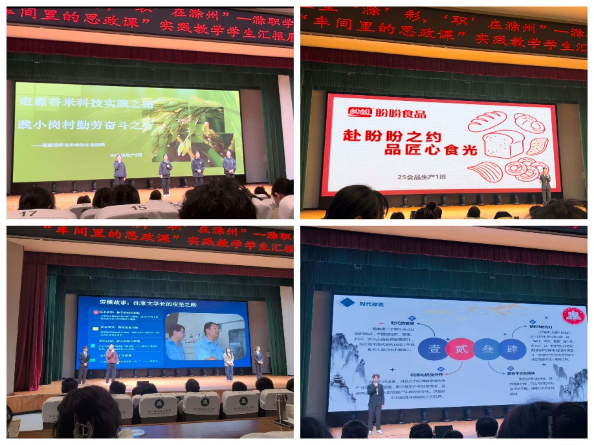本次活动既是学校“滁职学子看滁州”实践教学成果的集中检阅与精彩呈现,也是“匠星‘滁’彩 ‘职’在滁州”特色思政品牌建设的关键举措,为推动思政教育与职业教育、地方发展深度融合搭建了重要平台。活动筹备期间,马克思主义学院全体思政课教师全程跟进、悉心指导,牵头组织学生开展实地实践调研、素材梳理提炼、汇报内容打磨等系列工作,经过多轮严格遴选,13支优秀学生队伍成功突围,登上汇报舞台一展风采。