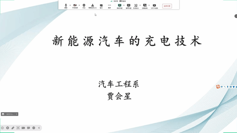 为了丰富学生课外生活,拓展学生专业知识,汽车工程系于11月30日晚19:00-20:30举办了“新能源汽车的充电技术”知识讲座,考虑到疫情防控因素,本次讲座在网上利用腾讯会议进行,由汽车专业课教师贾会星主讲。