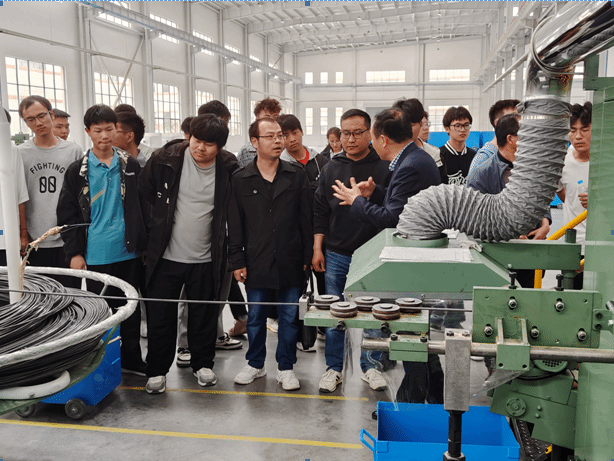 日泰汽车标准件有限公司副总经理王建明对刘杰等师生一行的到来表示热烈欢迎,并陪同参观了员工食堂、宿舍和工作车间,详细介绍了生产制造流程。刘杰强调,日泰汽车标准件有限公司与我校2021年开始签订学徒制培养模式,将2021级汽车制造与试验技术班设立为“日泰汽车班”,在人才培养、学生资助、科研服务等方面一直有密切合作。学生实际接触企业,了解了企业的文化,明确了工作岗位的具体要求,为后期的学习提供了方向。
