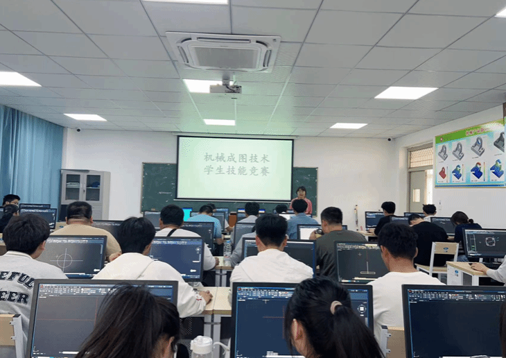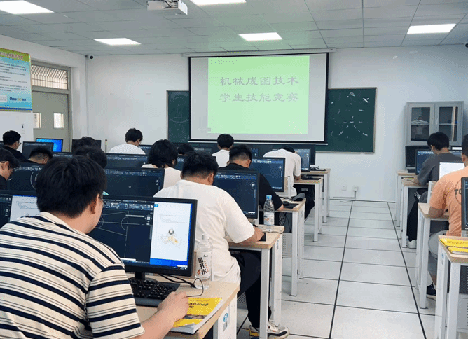 为进一步深化教育教学改革,全面落实我校“以赛促教、以赛促学、以赛促改、以赛促建”的理念,增强学生专业知识应用,提升技术技能人才培养质量,机械与汽车工程学院于2023年5月13日上午在7W205虚拟实训室成功举办了校第九届学生技能竞赛“机械成图技术”项目。