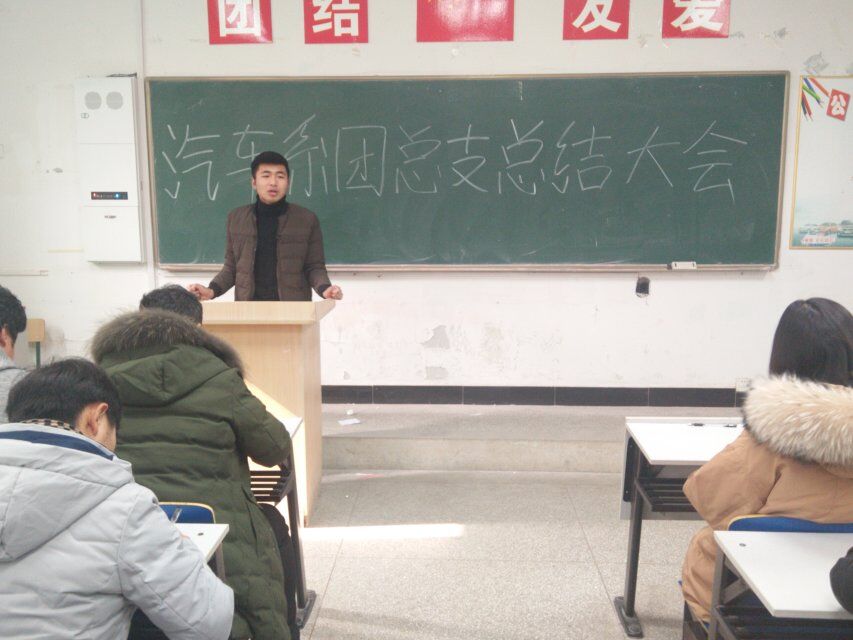 为了对过去一学期团总支工作进行总结,2018年1月17日,汽车系团总支在5113教室召开期末总结大会。本次会议由团总支副书记桑浩主持,胡新月老师及团总支全体成员都出席了此次大会。