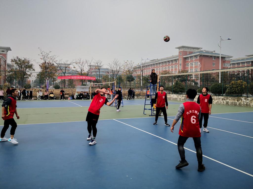 12月2日中午12: 30,汽车系与食环系在排球场展开新生杯排球赛。双方开场的气势上两方势均力敌,难分高下。