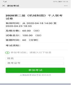4月18日,机械工程系杨军老师组织了相关专业学生,参加了全国第二届《机械制图》千人联考的线上开放联考活动,本次活动由上海灿态信息技术有限公司牵头,联合全国机械专业知名专家及院校共同举办的大型活动。我院学生报名参赛的19级新生共计90人,19机制班刘畅同学以81分名列我校第一名。本次比赛开拓了学生学习基础专业课的视角,为今后网络赛积累了一定的经验。