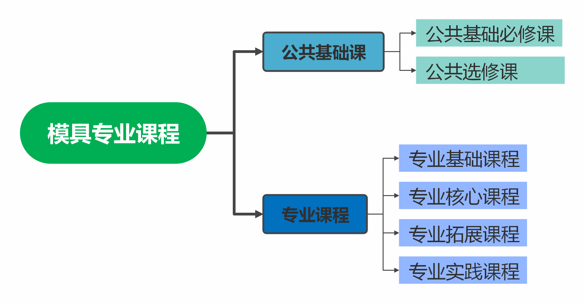 本专业课程体系由公共基础课、公共选修课、专业基础课、专业核心课、专业拓展课、专业实践课6大教学模块构成。