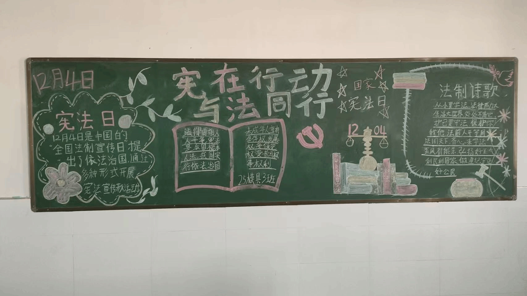 为深入贯彻落实宪法精神,进一步增强师生法治观念,机械与汽车工程学院于2025年12月4日组织各班级开展宪法主题黑板报创作活动,以生动活泼的形式推动宪法知识深入人心。