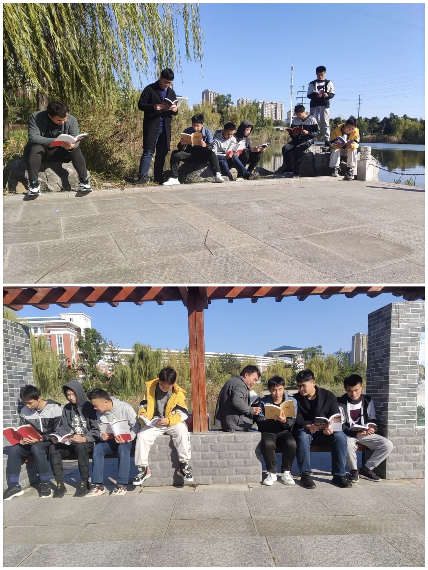 同学们在团支书杨仁豪的带领下有序的进入图书管寻找自己感兴趣的书籍,一个小时后同学们在乐水园处集合并互相分享了自己所阅读的书籍,如《新中国的诞生》《红色记忆》等。