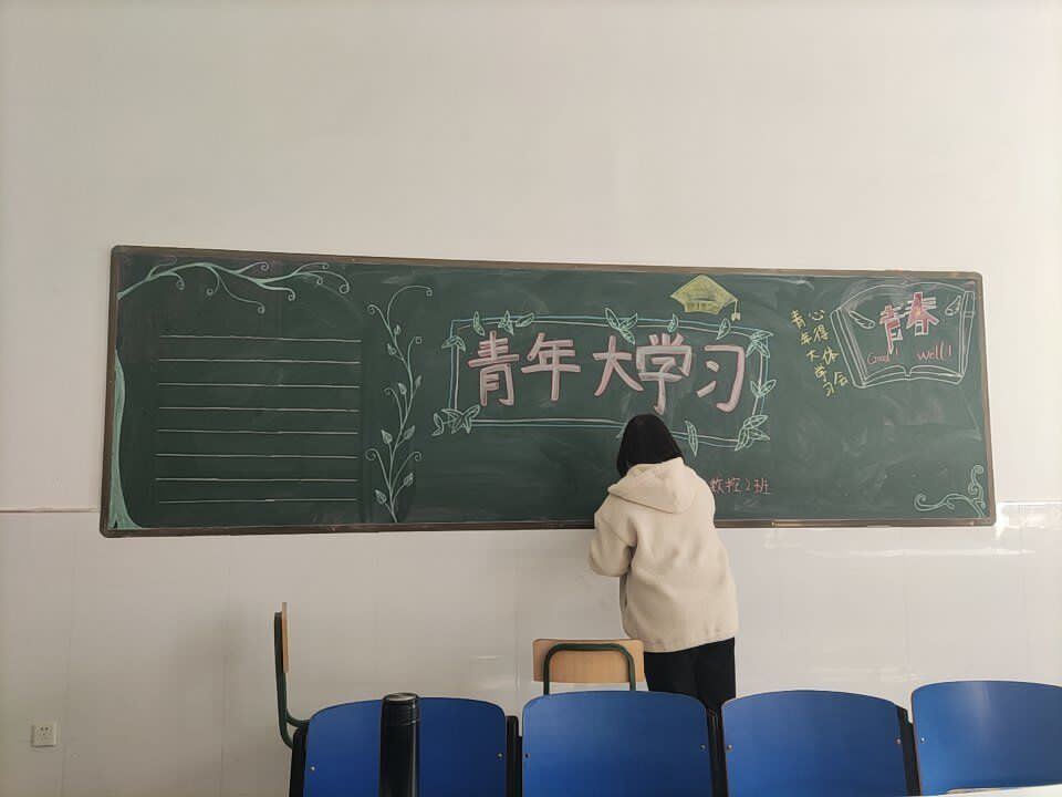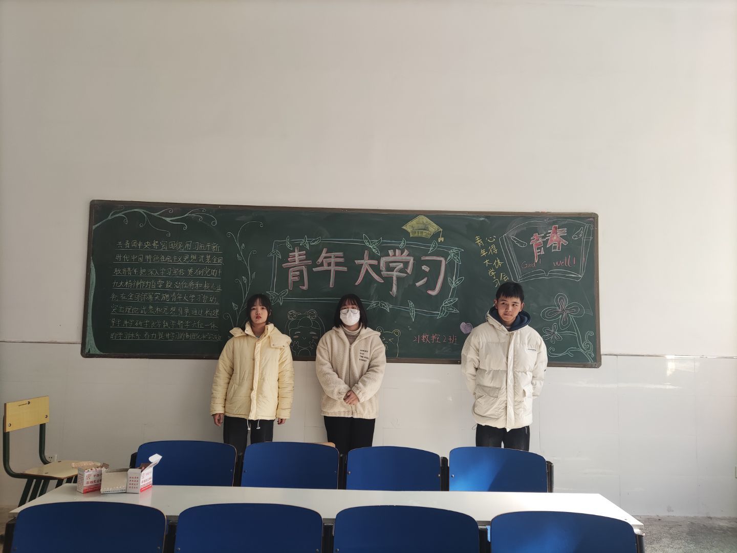 学习新思想,争做新青年。滁州职业技术学院机械与汽车工程学院21数控2班团支部于12.17日上午在5111教室开展“青年大学习”主题黑板报宣传活动。