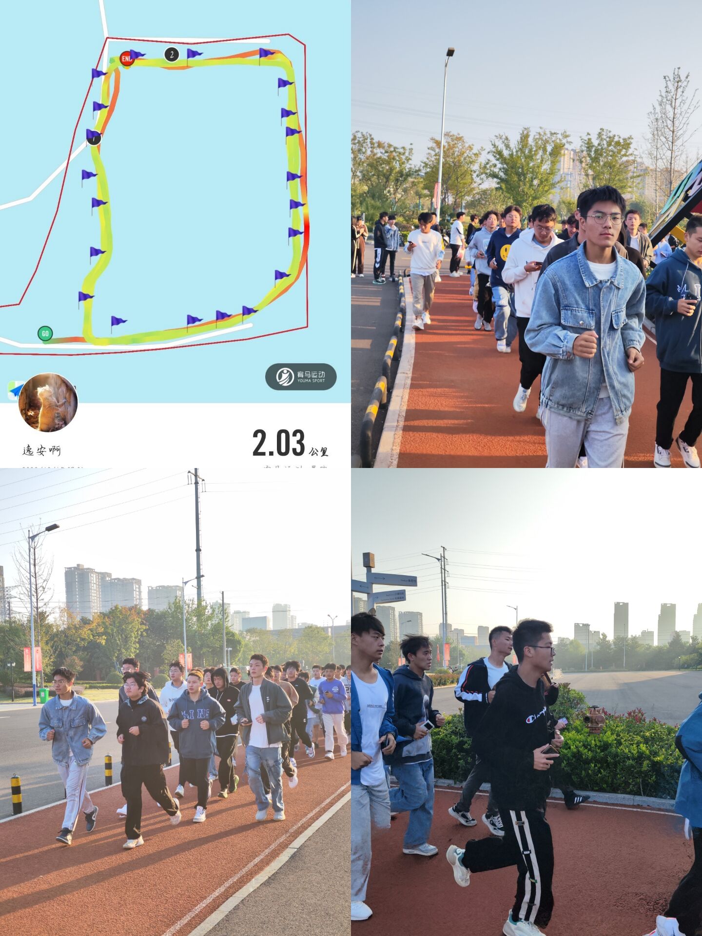 早晨七点整,伴随着太阳的升起,参加活动的同学们精神抖擞、步伐整齐,一路沿着体育馆外围跑道匀速前行。跑步中,他们个个精神焕发、斗志昂扬、热情高涨,在2公里的晨跑中全面释放激情,尽情挥洒汗水。晨跑结束后,同学们一起合影留念。