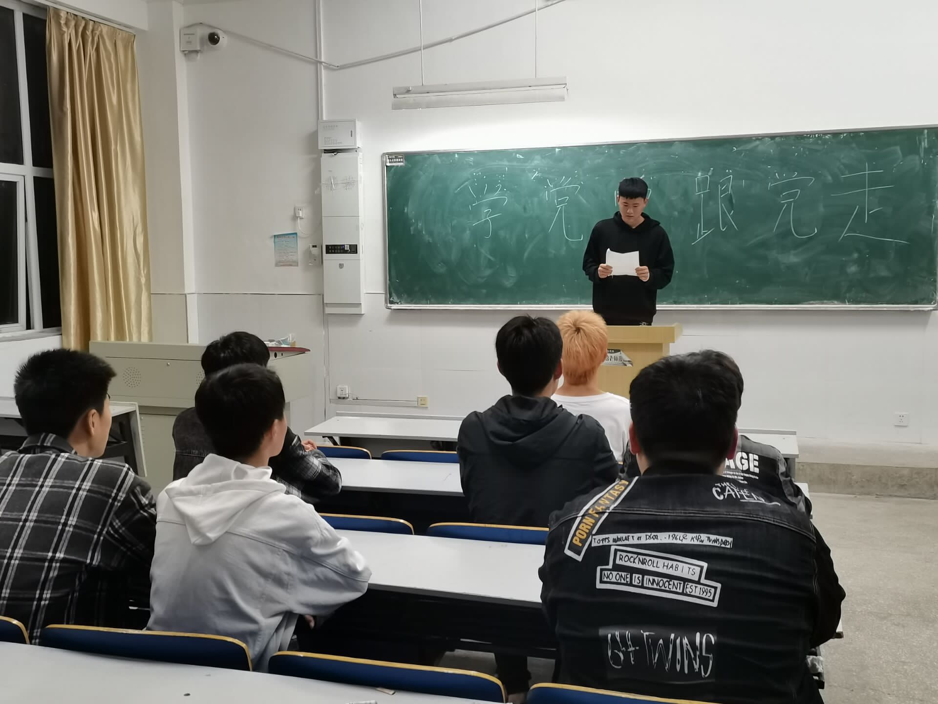 为加快推进党史学习,提高广大团员政治素养,坚定爱党爱国信念,2021年4月22日滁州职业技术学院机械与汽车工程学院2020数控技术在5111教室开展“学党史,跟党走”主题团日活动。