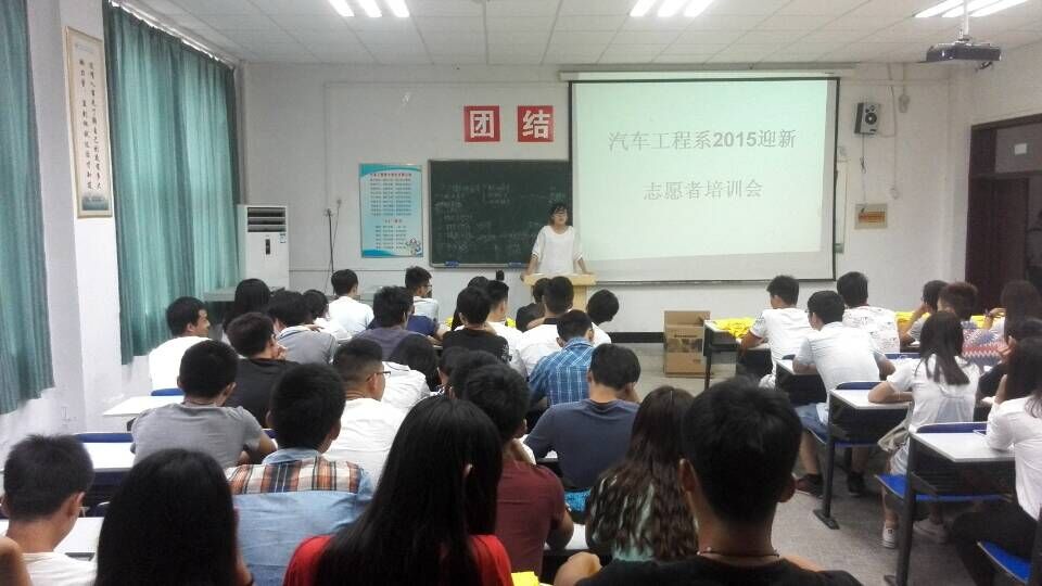 2015年9月11日中午,汽车工程系迎新志愿者培训会议在5113教室举行。本次会议由汽车系团总支书记、学生会指导老师朱婷婷主持,汽车系52名迎新志愿者参加。