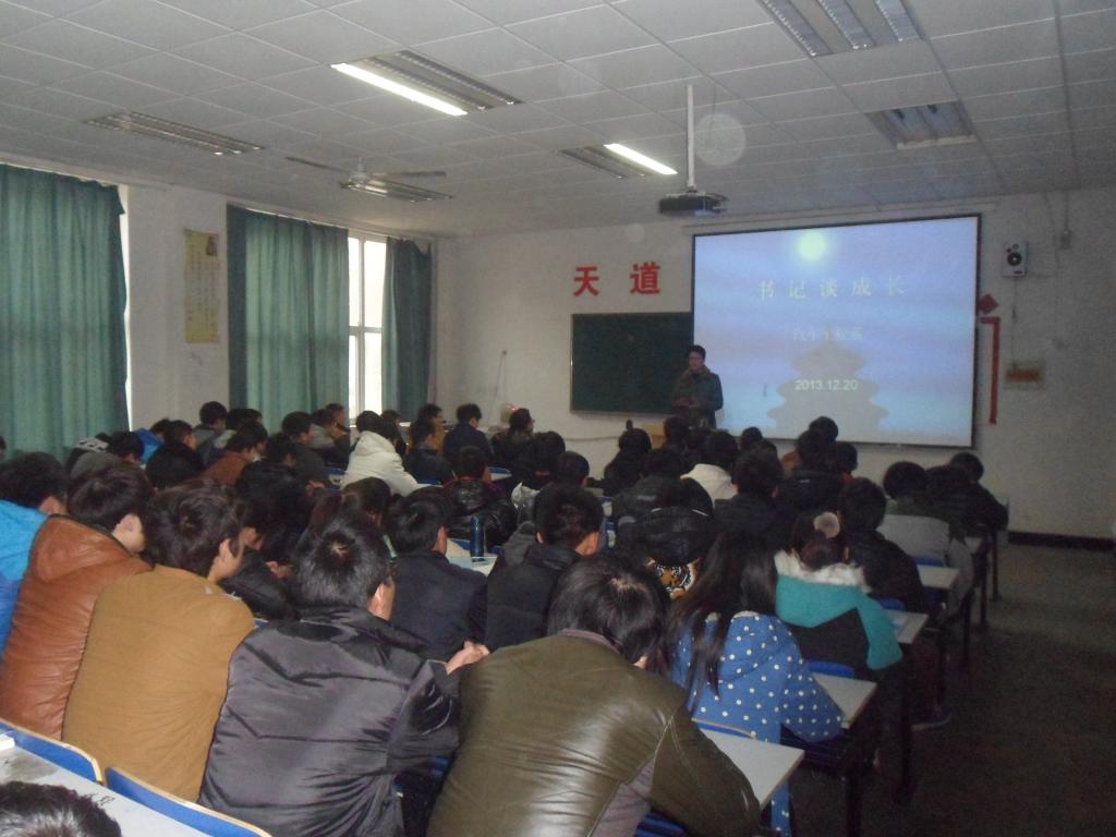 2013年12月20日下午,汽车工程系举办书记谈成长专题学习交流会,汽车工程系13级学生参加学习交流会。