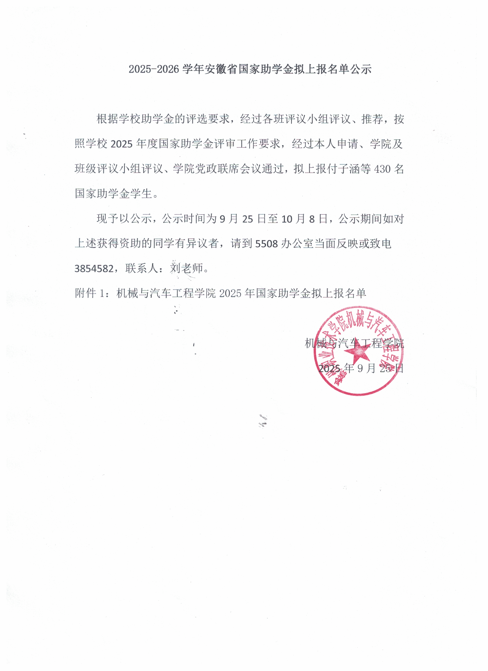 2025-2026学年安徽省国家助学金拟上报名单公示