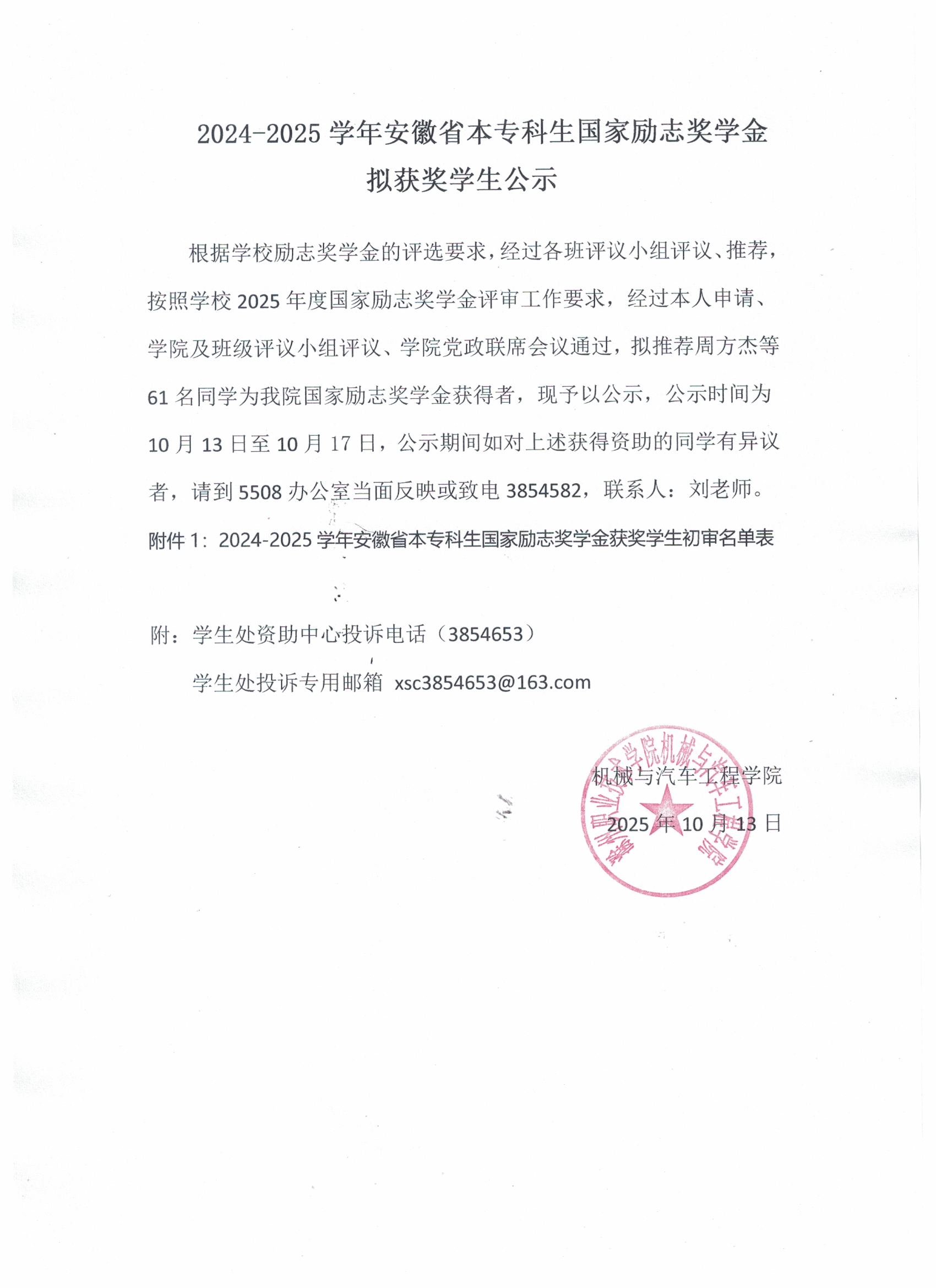 2024-2025学年安徽省本专科生国家励志奖学金拟获奖学生公示
